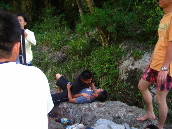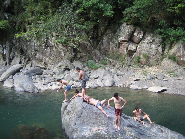上山後,來一張熱血青年相親照吧(下方的河谷就是我們剛才爬下去的地方....)