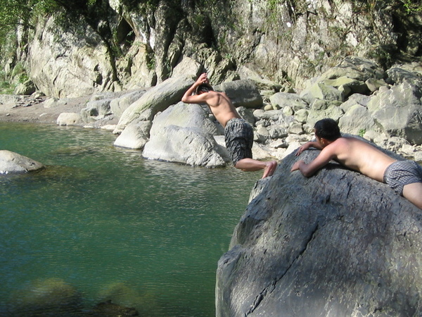 跳水嗎???不過正下方好像是石頭吶....