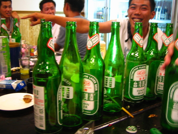 下山後,巴肚夭,新店一佰元快炒店,居然喝開了....= ="